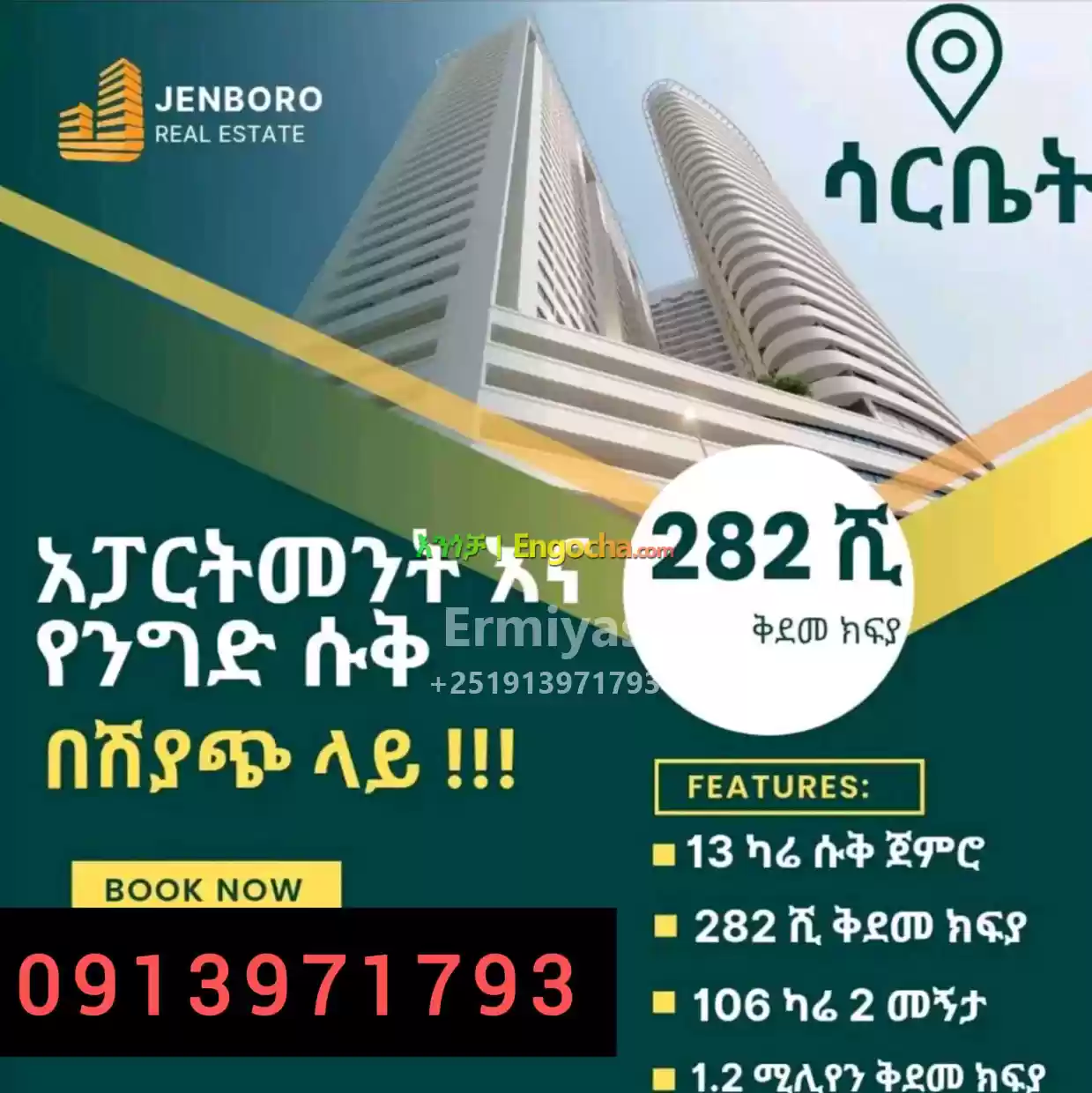 ጀንቦሮ ሪልስቴት(Grand Mall & Apartment)አፓርትመንት እና የንግድ ሱቅ ሽያጭ