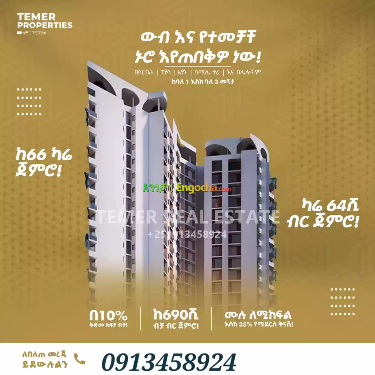 Temer Real Estate Apartment and shop for sale price in Ethiopia