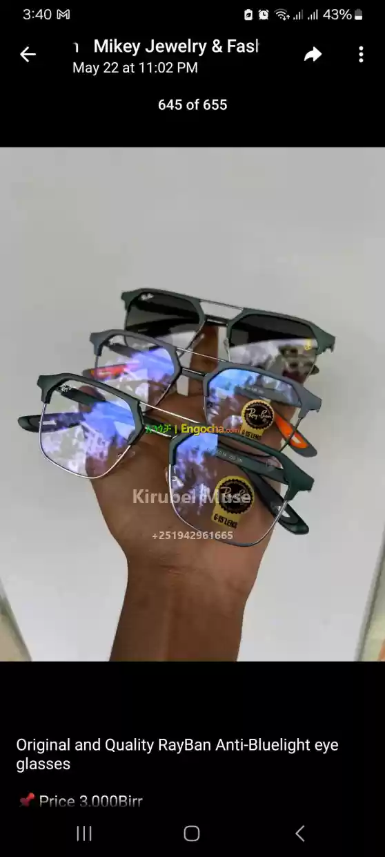 RayBan Blue Cut Eyeglasses for sale and price in Ethiopia