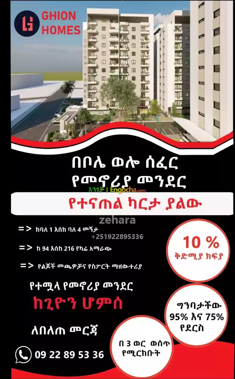 ለመኖር ፣ለማከራየት፣ለማትረፍ በሚመቸው መሃል ከተማ ወሎ ሰፈር እና ጎተራ መሃል በሚገኘው ሳይታችን ጊዜውን የሚመጥንና በ20,000ካሬ ላይ ያረፈ compound በከፍተኛ ጥራት እና በልዩ ዲዛይን የተገነቡ ዘመናዊ አፓርትመንቶች በማስታወቂያ ዋጋ ለሽያጭ አቅርበናል::