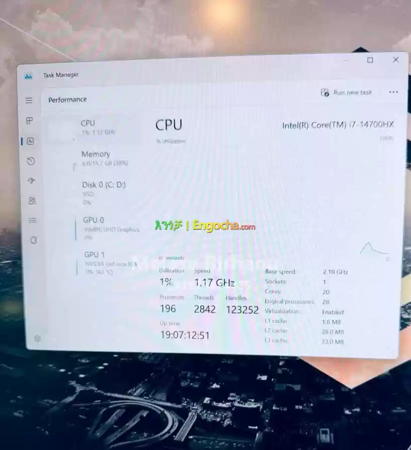 Intel 14th Gen core i7-14900HX 20 cores 28 Thrades Upto 5.60Ghz