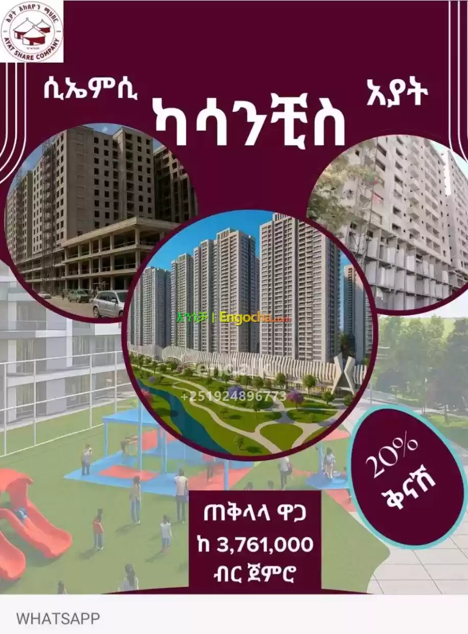 በተጨማሪ ግንባታቸው 90% እና አዳዲስ ሳይቶች(CMC:መሪ: አያት ) ላይ ከ40 ካሬ ጀምሮ ሽያጭ ላይ