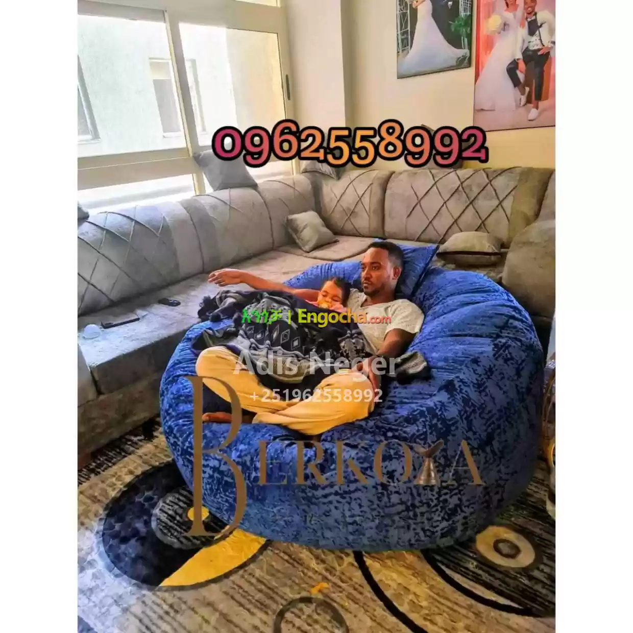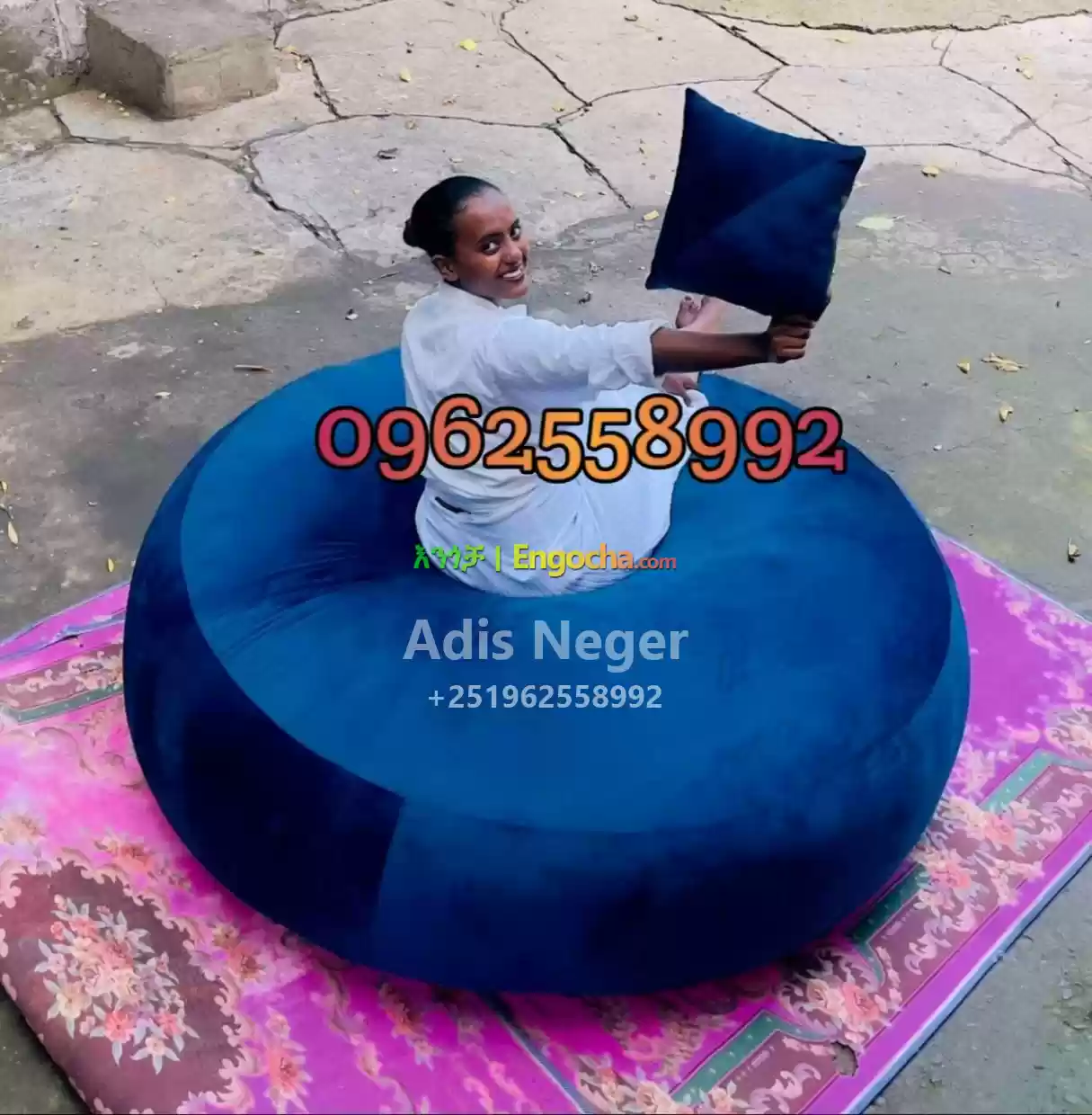 1.5 meter Bean Bag Chair with extra pillow ምቹ መቀመጫ ከተጨማሪ ትራስ ጋር