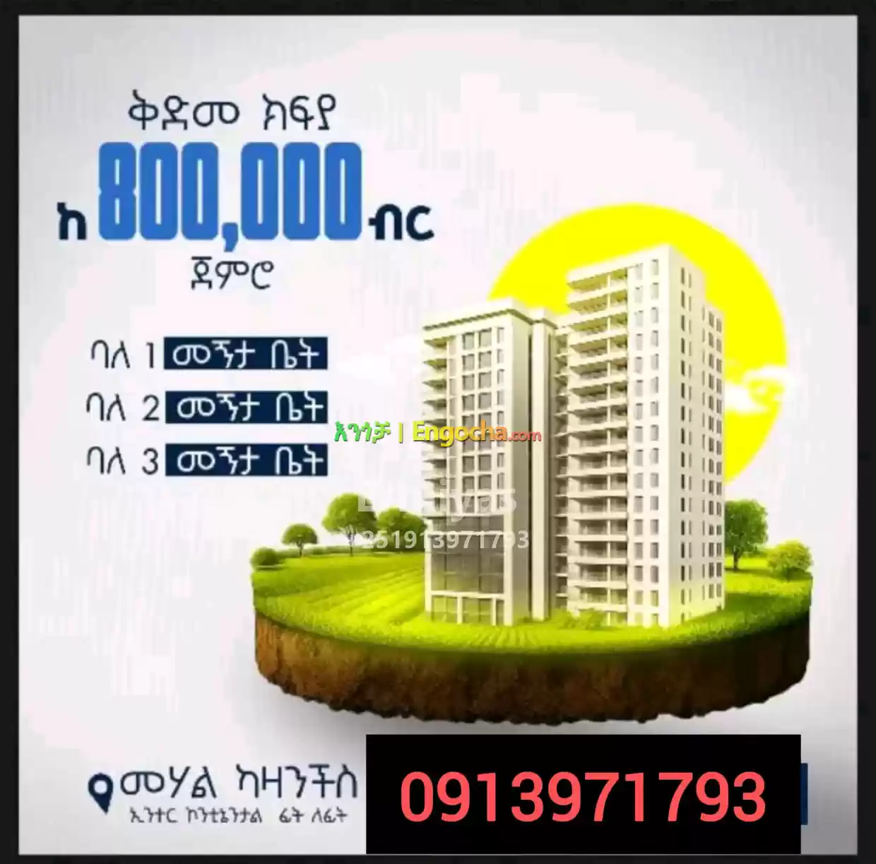 ካዛንቺስ በካሬ 98ሺ ብር for sale & price in Ethiopia