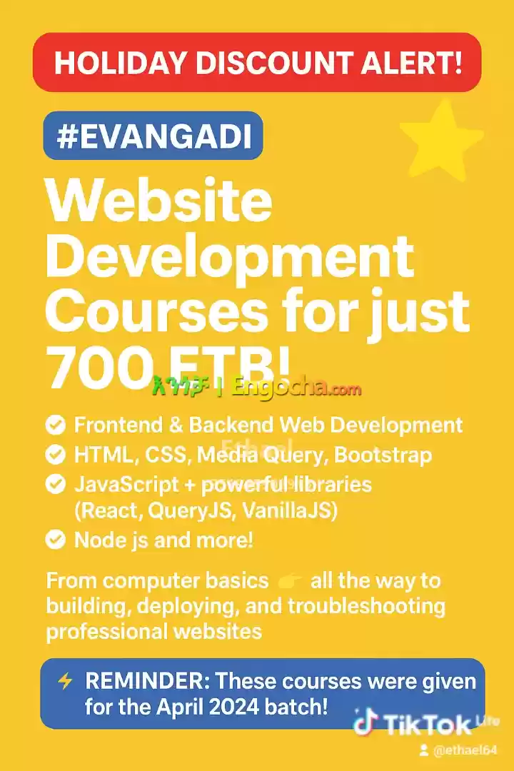 HOLIDAY DISCOUNT ALERT! Get #EVANGADI Website Development Courses for just 700 ETB!