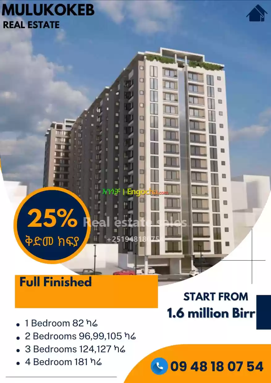 100% የተጠናቀቁ አፖርትመንት ቤቶችን በ 25% ቅድመ ክፍያ በ 1.6 ሚሊየን ብር ብቻ በመሀል CMC for sale & price in Ethiopia