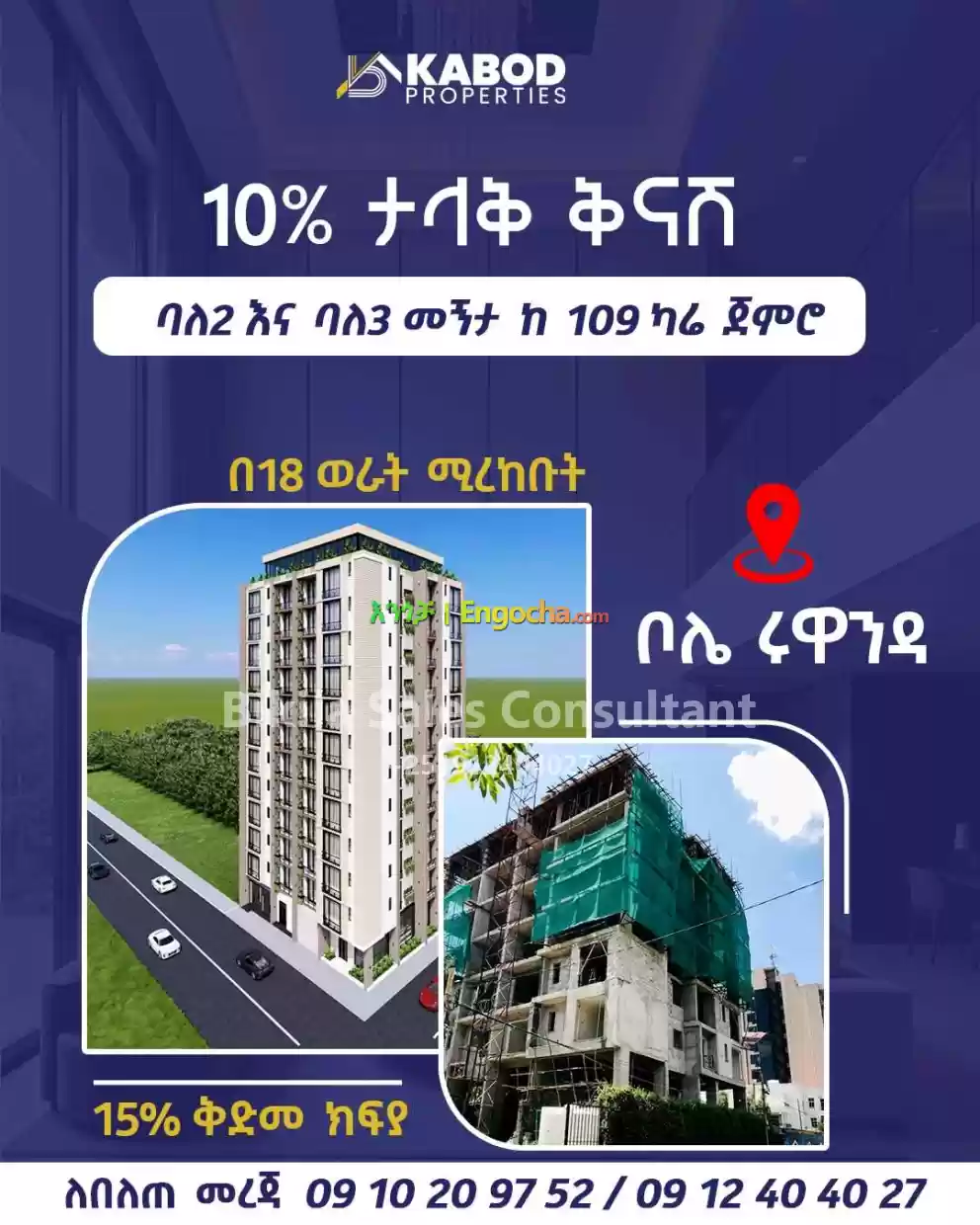 2 መኝታ:-109ካሬ