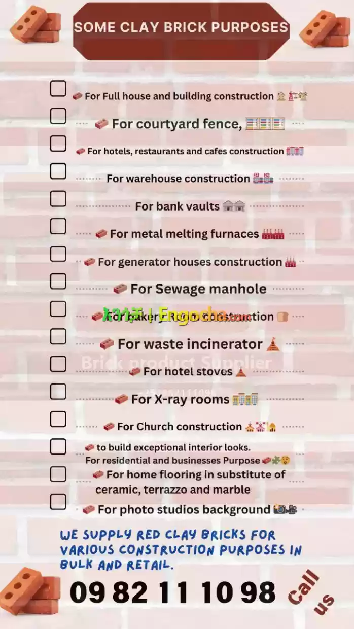 ጡብ clay Brick ሸክላ shekla for sale & price in Ethiopia