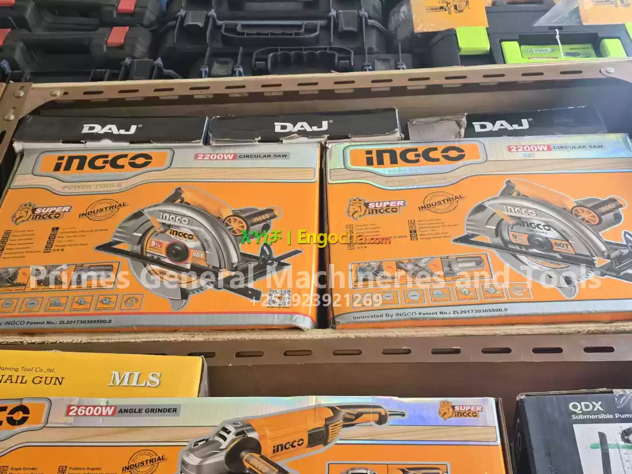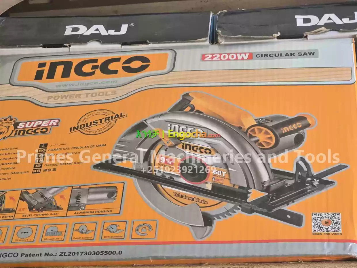 ️Ingco 2200W Circular Saw, a corded power ️tool designed for cutting various materials