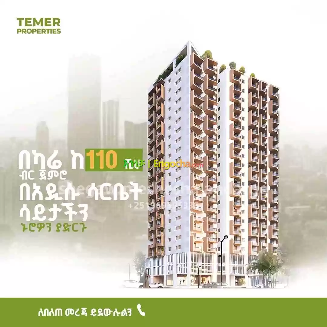 ባለ 3 መኝታ = 107ካሬ = 7.6ሚሊዮን