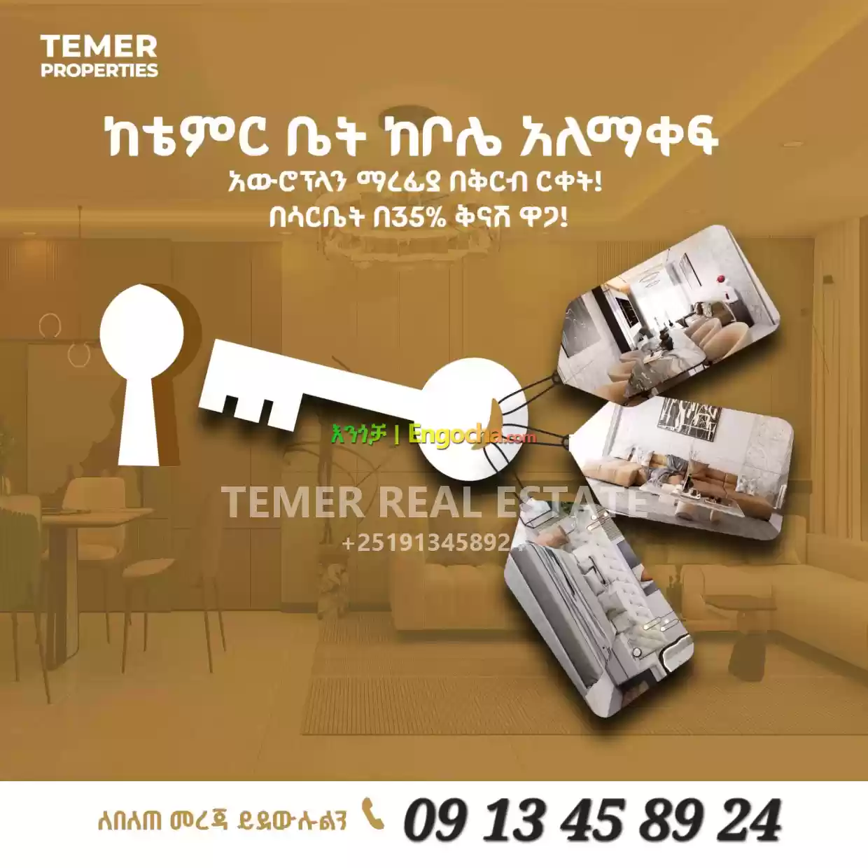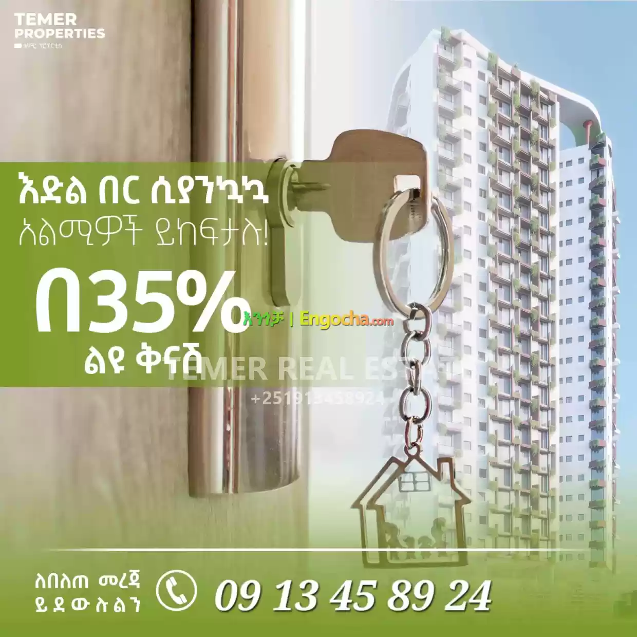 Temer Real Estate 35% Apartment For Sale price in Ethiopia