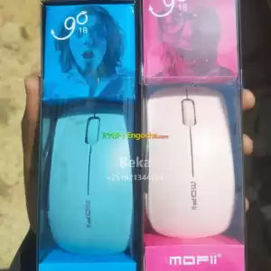 MOFII GO18 Wireless Mouse in a light blue and pink color